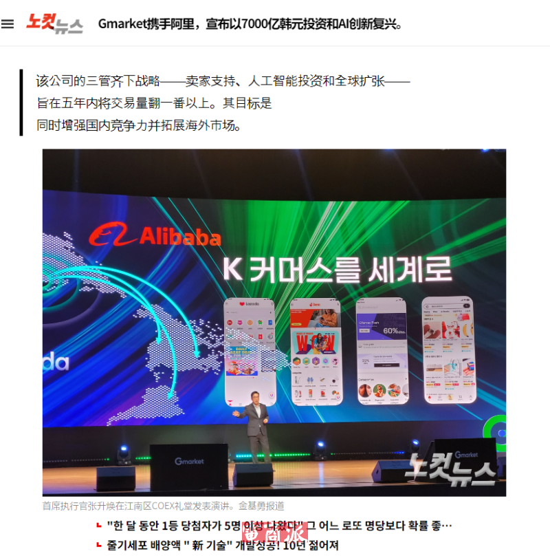 10月23日消息,韩国电商平台Gmarket宣布,将依托新成立的新世界集团与阿里巴巴国际控股的合资公司,投资7000亿韩元(约4.9亿美元)推动业务重组和全球扩张。该计划旨在加码人工智能技术升级与卖家...