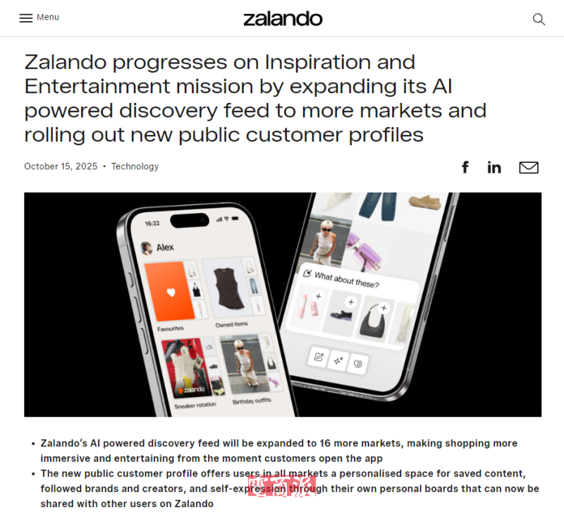Zalando将“AI个性化推荐区”扩展至16个新市场